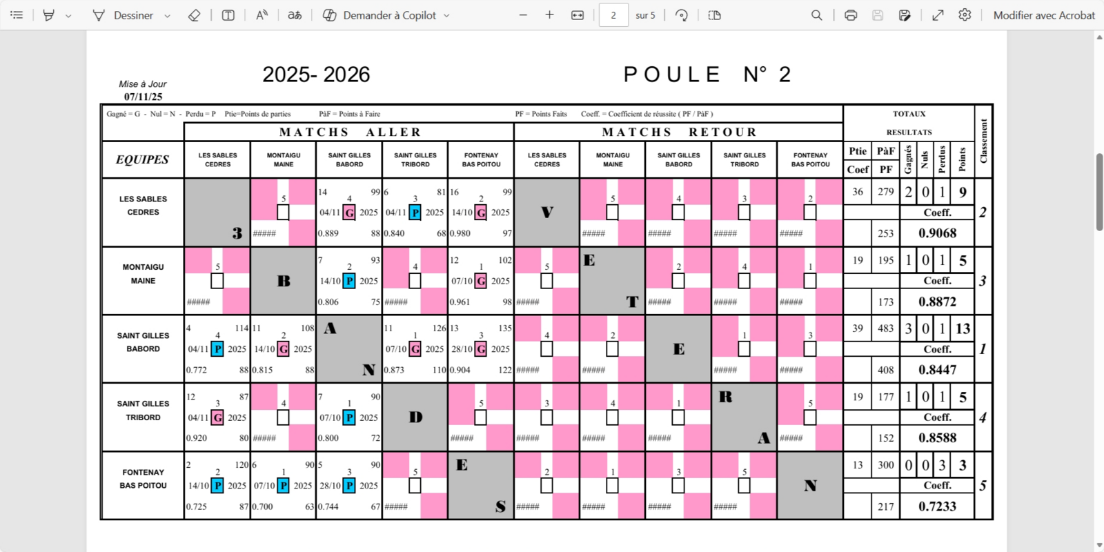 Résultats intermédiaires vétérans "trois bandes". (Equipes Bâbord et Tribord).