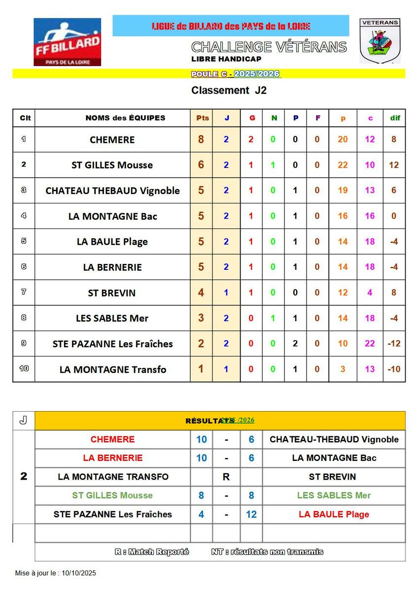 Résultats journée 2 poule C
