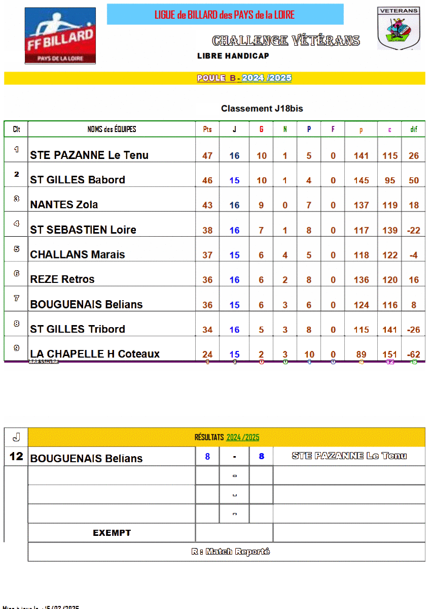 Ste Pazanne en n'obtenant pour sa dernière rencontre qu'un match nul nous confirme comme vainqueur de notre poule, en effet même si nous perdions contre La Chapelle