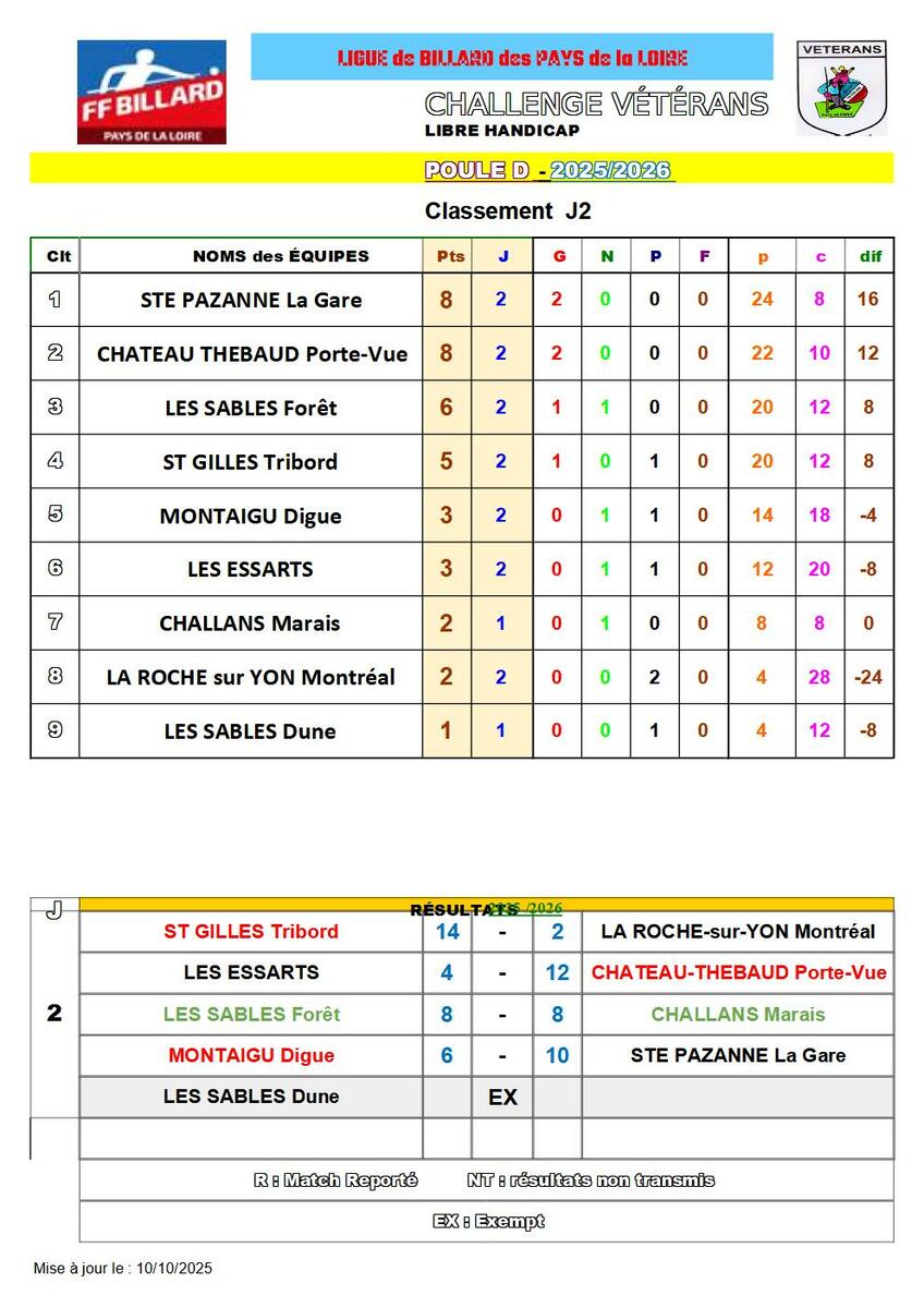 Résultats journée 2 poule D